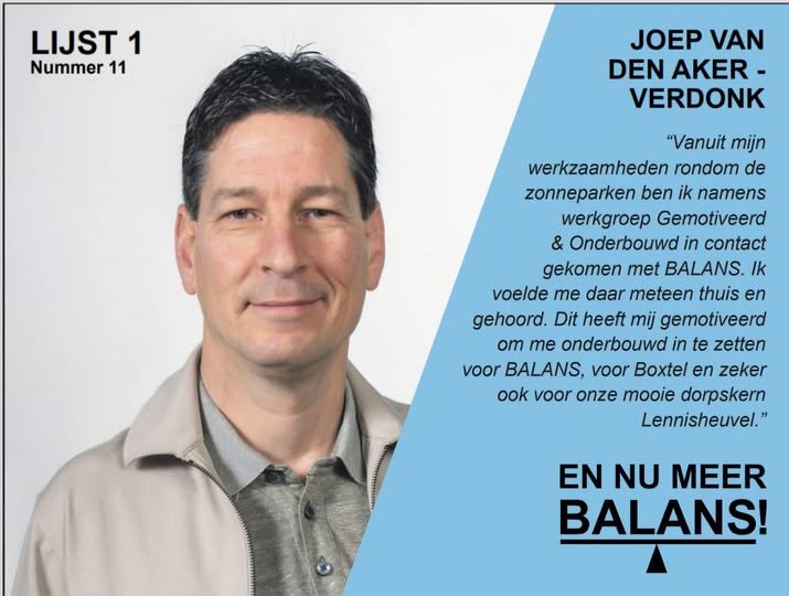 De lijst wordt aangevoerd door onze lijsttrekker Gerlof Roubos, die al jaren het politieke gezicht van BALANS Boxtel vormt. Daarnaast stellen onze kandidaat wethouders zich beschikbaar om bestuurlijke verantwoordelijkheid te nemen en onze plannen daadwerkelijk uit te voeren. Samen met de overige kandidaten vormen zij een sterk team met kennis van en hart voor Boxtel, Liempde, Lennisheuvel en Esch.